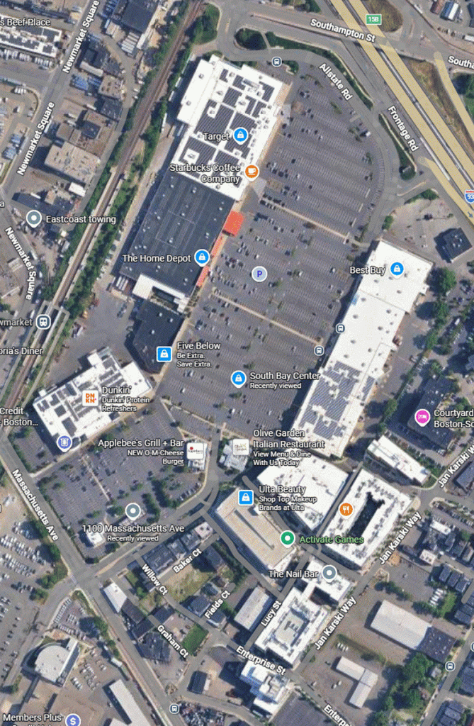 One final thought/insight that can be gained from viewing an aerial. A really good friend, Mike Winters (formerly of Cedar Shopping Centers), had such outstanding experience with his ability to analyze an aerial, that he could use the aerial (in conjunction with a pass through the produce, meat and dairy section of a grocery store to fairly accurately determine a supermarket’s sales per square foot. How is that possible from an aerial? He could look at how far out the oil stains went into the parking field to see how much parking was used regularly. Mike always made me recognize that I was just a novice!